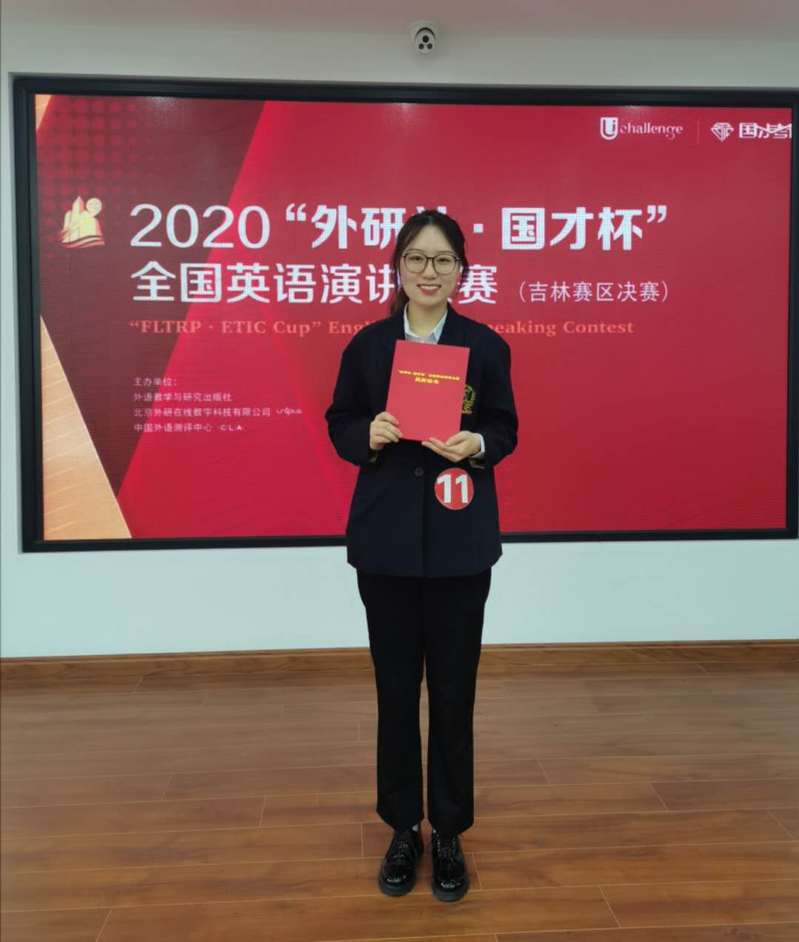 新闻网讯(通讯员 张梓琪)2020年10月31日上午八点,“2020•外研社国才杯”演讲大赛吉林赛区决赛在长春理工大学举行。本次省级决赛采取线上与线下相结合的竞赛形式。组委会根据线上命题演讲评审结果,在43名选手中选拔出12 名选手进行线下比赛。在指导老师路静的带领下,我校yl6776永利集团18级学生张梓琪荣获一等奖。