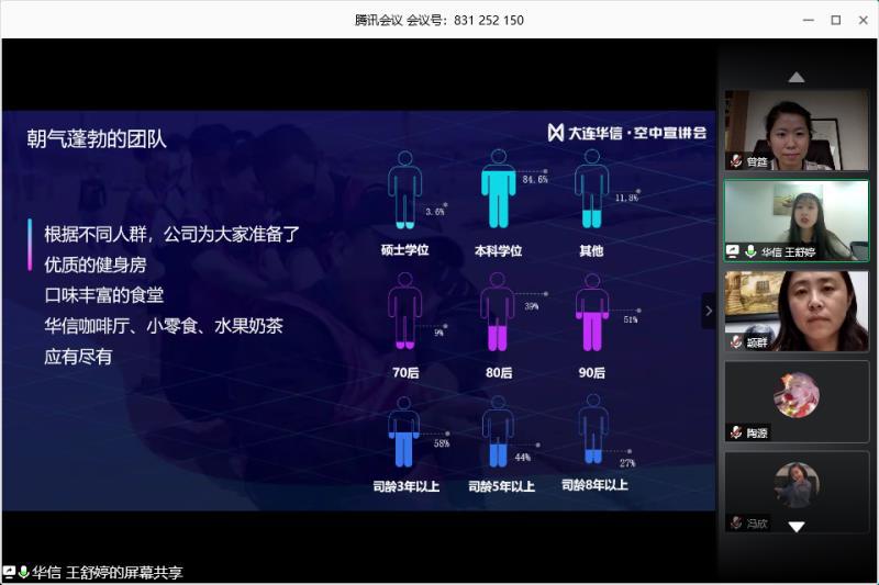 2020年6月11日晚19:30,由于疫情影响,yl6776永利集团特邀请大连华信计算机技术股份有限公司,在腾讯会议平台,为我院日语专业大三的学生召开了“大连华信实习线上宣讲会”。本次宣讲会由大连华信人力资源负责人白璐主持,王舒婷为主讲人,yl6776永利集团副书记王颖群、日语系主任曾妍及全体2017级日语专业学生参加了本次会议。