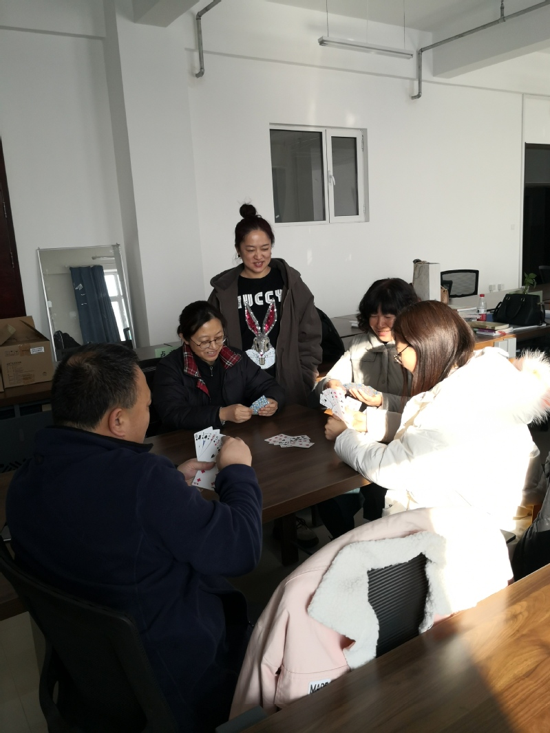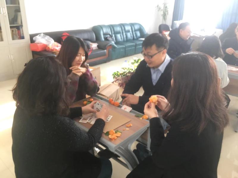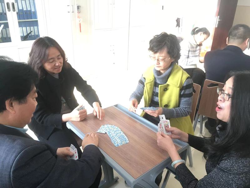 英语系教师、两办及语言训练中心教师开展了打扑克、下跳棋等活动,沉着思考,斗智斗勇,抓住时机,果断出手,活动现场气氛热烈,欢呼声迭起,所有参与者都洋溢着快乐的笑容。