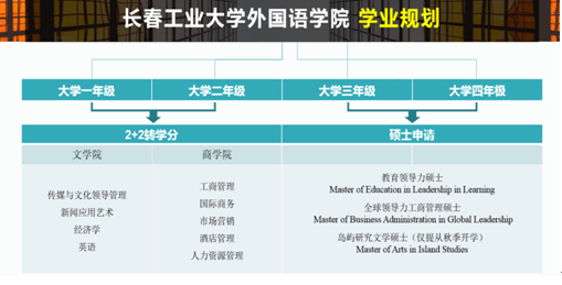 该项目于2019年正式启动,根据两校签署的合作培养协议,学分互认项目采取2+2联合培养模式,即大一、大二在长春工大学习,第三、四年赴爱德华王子岛大学攻读。符合两校毕业要求的学生将获颁6776永利集团学士学位证书和爱德华王子岛大学学士学位证书。学生本科毕业后可继续申请攻读加拿大或美国大学硕士学位,也可在本科毕业后申请移民,根据职业领域的需求继续申请攻读硕士学位或选择就业。