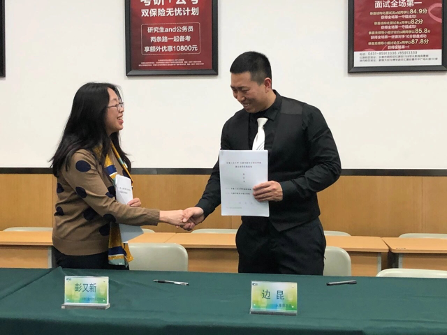 接着,双方达成一致并签订就业指导实践基地协议。最后,举行了揭牌仪式,由彭又新院长、王颖群书记、边昆老师、吴博老师共同揭牌。仪式结束后,新东方学校领导带领我院领导参观了长春新东方学校。