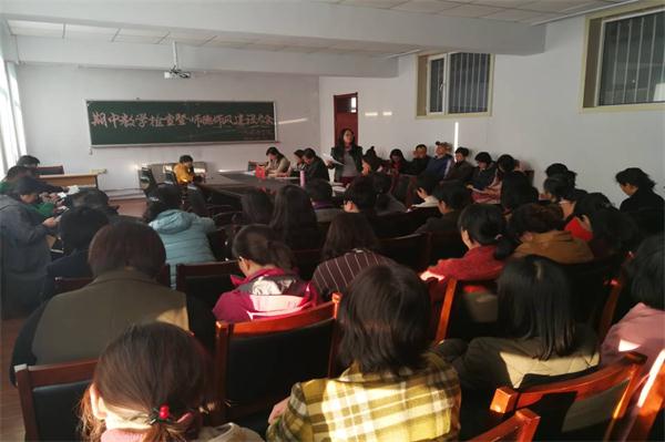 2018年10月24日下午1点30分,yl6776永利集团在会议室召开了期中教学检查暨师德师风建设大会,全体教职工参加了大会。会议由学院党委书记尤海涛主持。院长彭又新首先宣读了学院师德师风建设的活动方案,并宣布学院将开展围绕 “师德师风建设”的一系列活动。