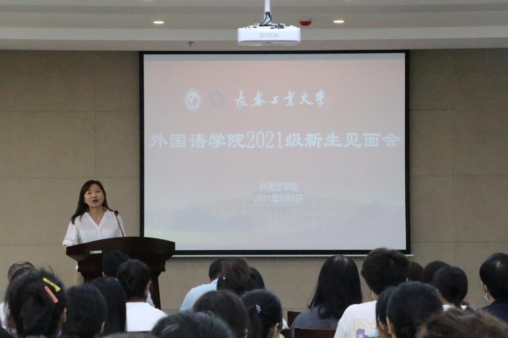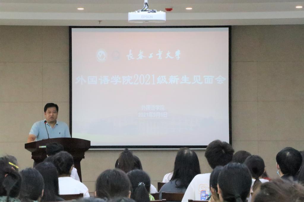 副院长王轶代表学院对2021级新生的到来表示欢迎,并希望各位同学通过四年的学习,能够外韵毓秀,语萃添香,修德立身,学贯中西。