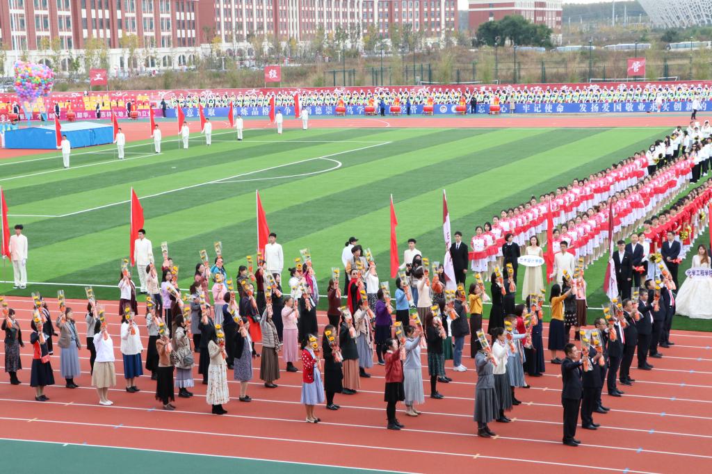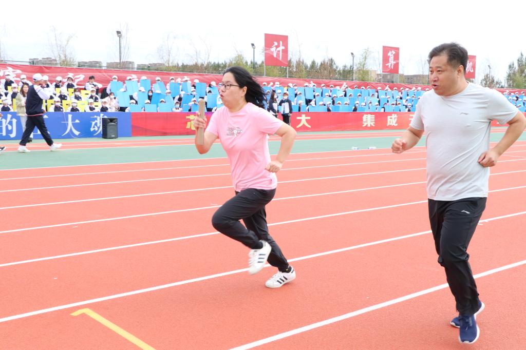 田径运动会上,全院教师响应号召,积极参与,组成了70余人的检阅队伍,身着靓丽服装、手持向阳花,和学生队伍一起,意气风发地走过主席台,接受检阅,充分展示了yl6776永利集团团结拼搏、健康向上的精神风貌。