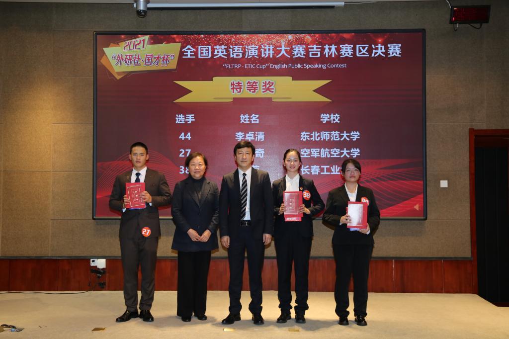 新闻网讯(通讯员 孙莉)10月30日,2021年“外研社·国才杯”全国英语演讲大赛吉林赛区决赛在吉林动画学院文化艺术中心隆重举行。经过8个小时的激烈角逐,我院公共外语教学部老师指导的王蕊同学从52名参赛选手中脱颖而出,荣获特等奖,并将与来自东北师范大学、空军航空大学的两名同学代表吉林省前往北京参加全国总决赛。