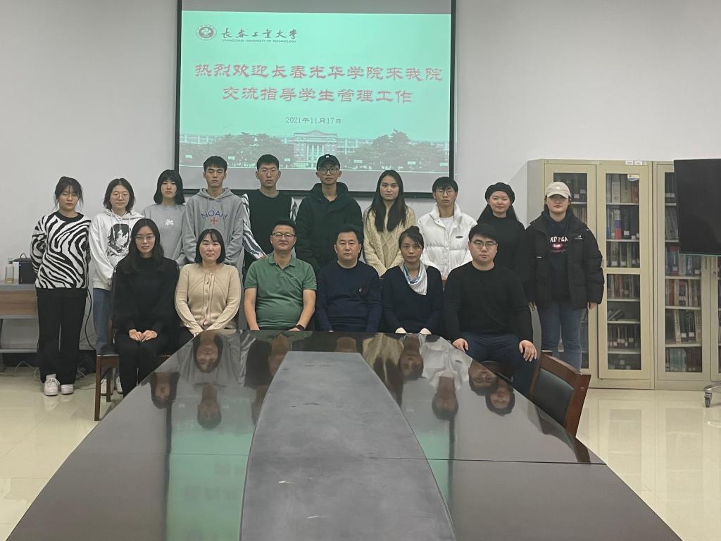 新闻网讯(通讯员 梁可伊)11月17日下午,长春光华学院现代教育学院党总支副书记兼副院长宫宴宾、团总支书记赵闯、学生党支部书记杨迦程、2018级辅导员刘晓晶以及部分学生干部代表等一行来我院进行交流学习。yl6776永利集团党委副书记于伟热情接待了来访客人,yl6776永利集团学生党支部书记刘明慧,学院辅导员助理、研究生会主席李姝焱以及部分学生干部代表参加此次交流会。