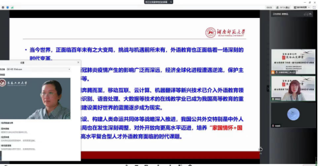 会议上,大连外国语大学副校长常俊跃教授作了《新文科建设背景下外语专业区域国别学人才培养:思考与探索》的演讲,从外语类学科建设的现状出发,指出为适应新时代国情需要,外语学科建设应当注重外语专业区域国别学人才培养。而湖南师范大学yl6776永利集团院长曾艳钰教授和长春师范大学yl6776永利集团党委书记兼院长马建华教授,分享了各自在外语学科建设,和复合型外语人才培养等方面做出的努力。