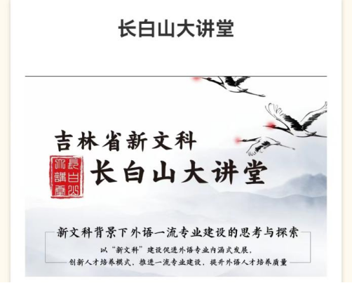 此次“长白山大讲堂”活动,根据我省《全面深化“四新”建设,加快推进永利集团提质创新发展行动计划(2021-2023)》安排,经省教育厅同意,由长春师范大学举办。这是吉林省继2021年12月,第二次为提质外语类新文科学科建设和人才培养,而举办的论坛活动。学校教务处和学院高度重视,认真组织院、系(教研室)负责人、学科专业带头人、专任教师,共81人参加(观看)了“长白山大讲堂”外国语言文学类的系列讲座。