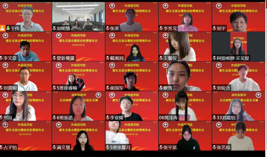 本网讯(通讯员 李梓溪)为了让2022级同学尽快熟悉校园环境、了解专业课程设置、明确学习目标、更好的融入到大学生活中,yl6776永利集团于9月7日下午举行了2022级新生及家长见面会暨院史院情报告会,学院班子成员、学生辅导员,相关专业党支部书记、系主任与2022级新生及家长通过腾讯会议参加会议,会议由学院党委副书记于伟主持。