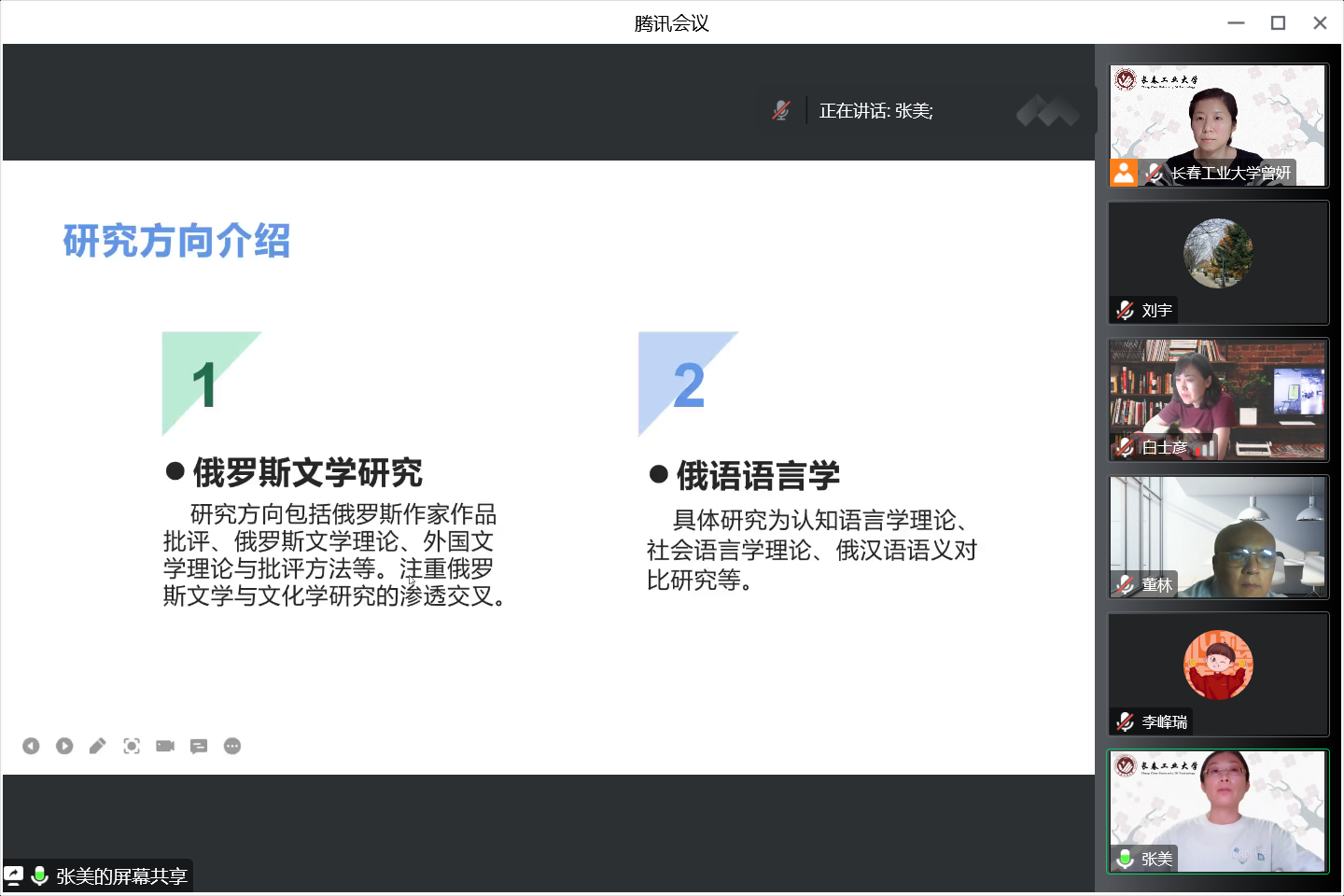 随后,张美进行了俄语语言文学方向的说明。主要从专业介绍、招生指南、题型介绍三个方面对俄语语言文学方向的发展历史、导师团队、课程体系、研究方向、就业前景、赴俄留学项目、招生计划、题型设置等相关问题进行了详细地介绍,在过程中强调了读研对于人生的意义以及报考6776永利集团研究生的优势。她希望各位考生基于自身情况有针对性地制定复习方案,注重专业基础语言能力和语言素养地提升。