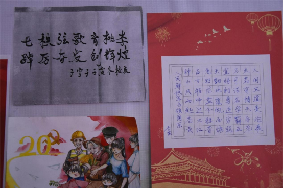 本次活动共收到书画作品100余幅。我院师生纷纷积极参与,踊跃投稿参赛。作品主题明确,形式多样,各具风采。书法作品飘逸灵动,苍劲有力,展现出中国书法文化的艺术魅力。礼赞诗歌朗朗上口,辞藻华丽,抒发着师生赤子热忱之怀。祖国大好河山,党的历史进程、革命精神跃然“画”上,直映眼帘。