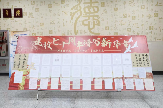 七十载,风雨兼程,积淀深厚底蕴;七十载,回首同庆,举杯再续华章!庆学校七十华诞,宏图更展,再创辉煌。回望过去,我们无比自豪;展望未来,我们信心十足。在这特殊的日子里,我院师生对于学校都有千言万语要表述,每个人都将心中的祝贺化为笔下温暖的祝福,一起为七十周年谱写澎湃华章。