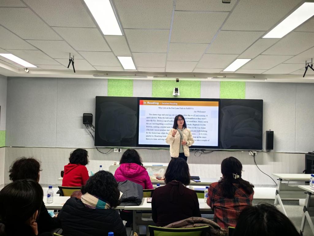 本网讯(通讯员 赵雪)为贯彻落实党的二十大和学校改革发展专题研讨会精神,进一步推动大学英语教学改革,助力我校教学高质量发展,2023年3月8日上午,公共外语教学部第一、第二教研室在我校南湖校区智慧教室开展了新学期大学英语集体备课教研活动,yl6776永利集团院长王轶、公共外语教学部主任孙莉参加活动并观摩指导。活动通过现场说课及交流互动的形式,明确了新教材教学内容的重难点,探索了大学英语教学中课程思政及“以学生为中心”的多元化教学模式的实施路径。