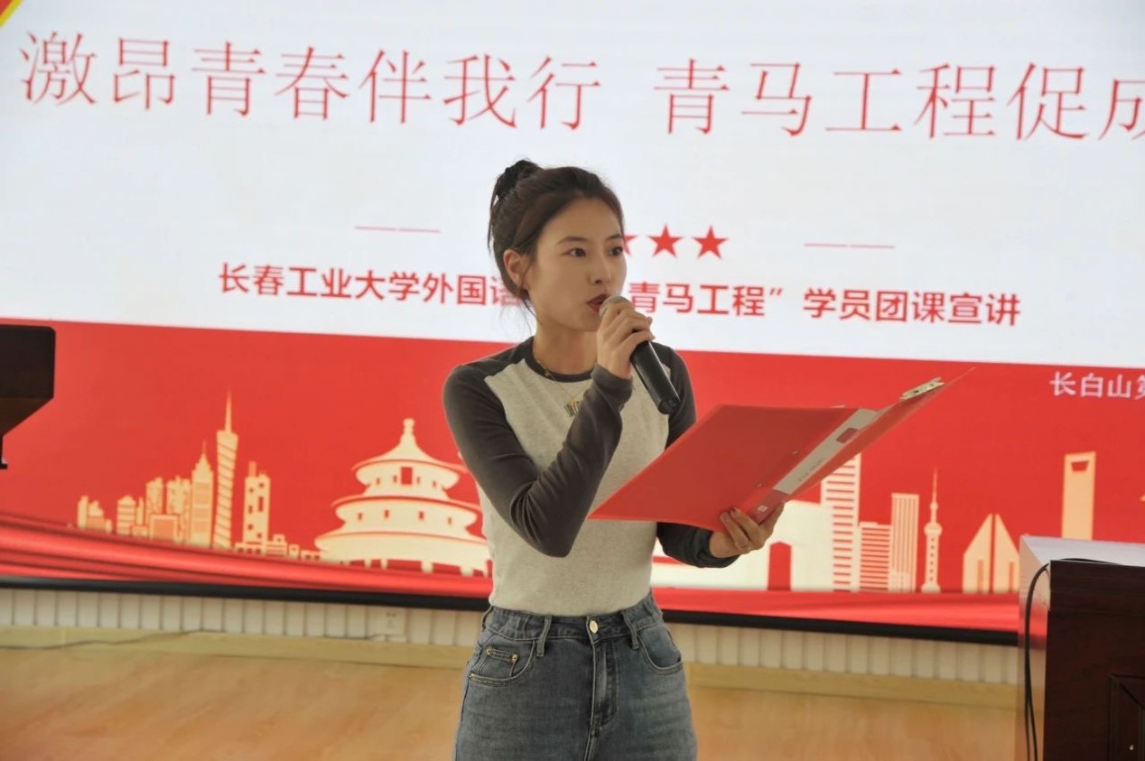 孙琪郡对我校此次活动表示热烈欢迎,并向全体团员宣讲了团中央开展青马工程的意义。本次团课主讲人员为211001班团支书李杭霓、211003班生活班长张馨月、221004班班长王馨仪,三位同学精心选题、认真备课,从理想信念教育、爱国主义教育、道德品行教育以及团员意识教育四个模块进行宣讲。