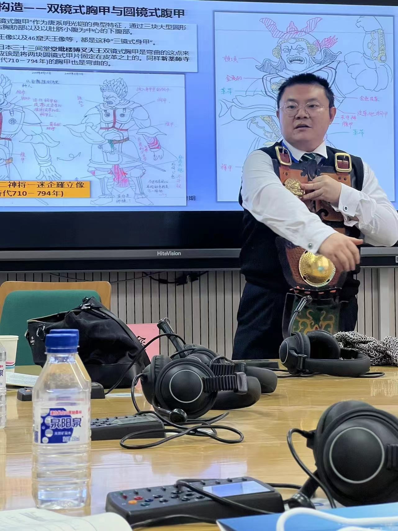 我院日语系宋卓时老师在第七分会场上展示其制作的唐代明光铠复原件