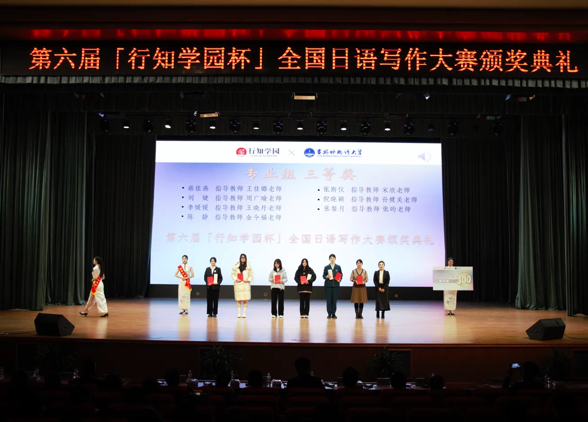 本网讯(通讯员 王佳璐 蔡佳燕)2023年11月18日下午,第六届「行知学园杯」全国日语写作大赛颁奖典礼在吉林外国语大学隆重举办。本届大赛由日本行知学园株式会社主办,吉林省翻译协会、行知学园天津校协办,吉林外国语大学东方语学院承办,大赛秉着“以赛促学,融汇中日”的办赛理念,为所有日语爱好者提供交流学业、提升自我的平台。