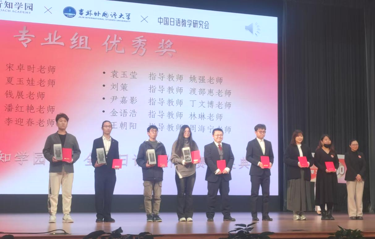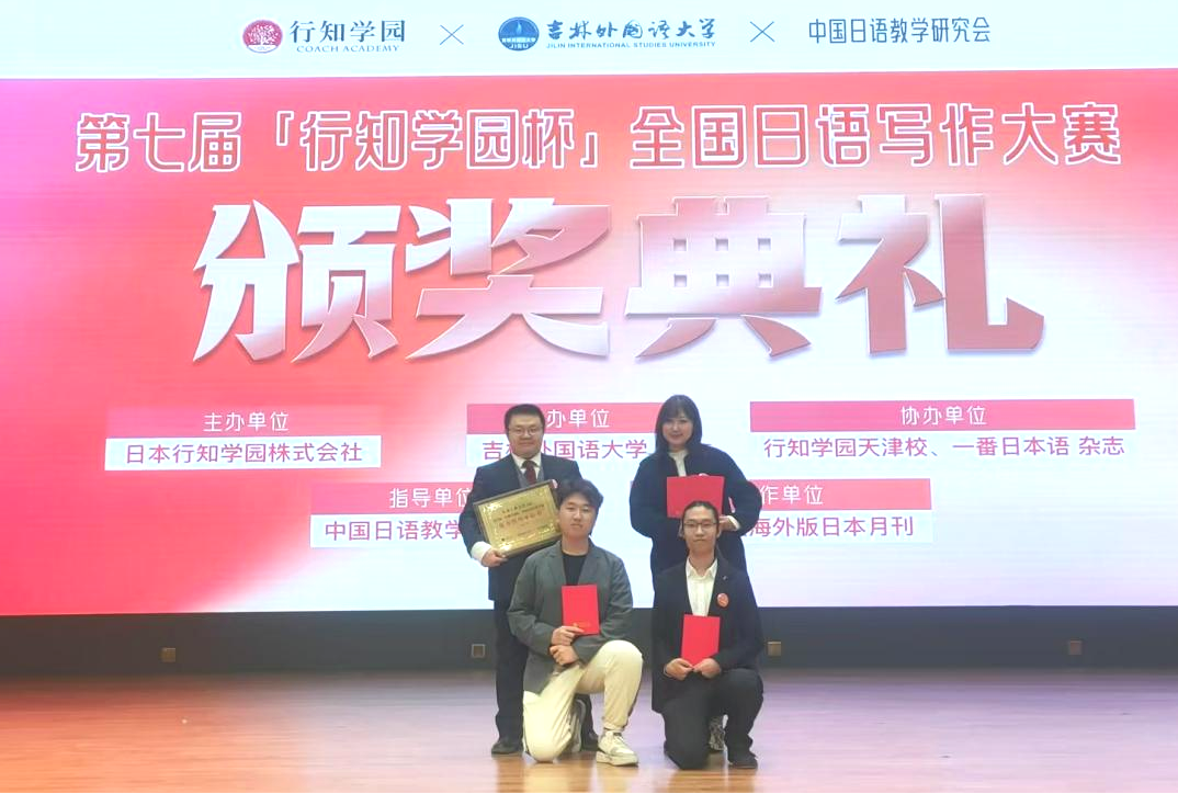 本网讯(通讯员 宋卓时)11月23日下午,第七届“行知学园杯”全国日语写作大赛颁奖典礼在吉林外国语大学隆重举行。大赛由日本行知学园株式会社主办,吉林外国语大学承办。我院日语专业2022级学生史洪彰、刘策两名同学和指导教师代表学校参赛。