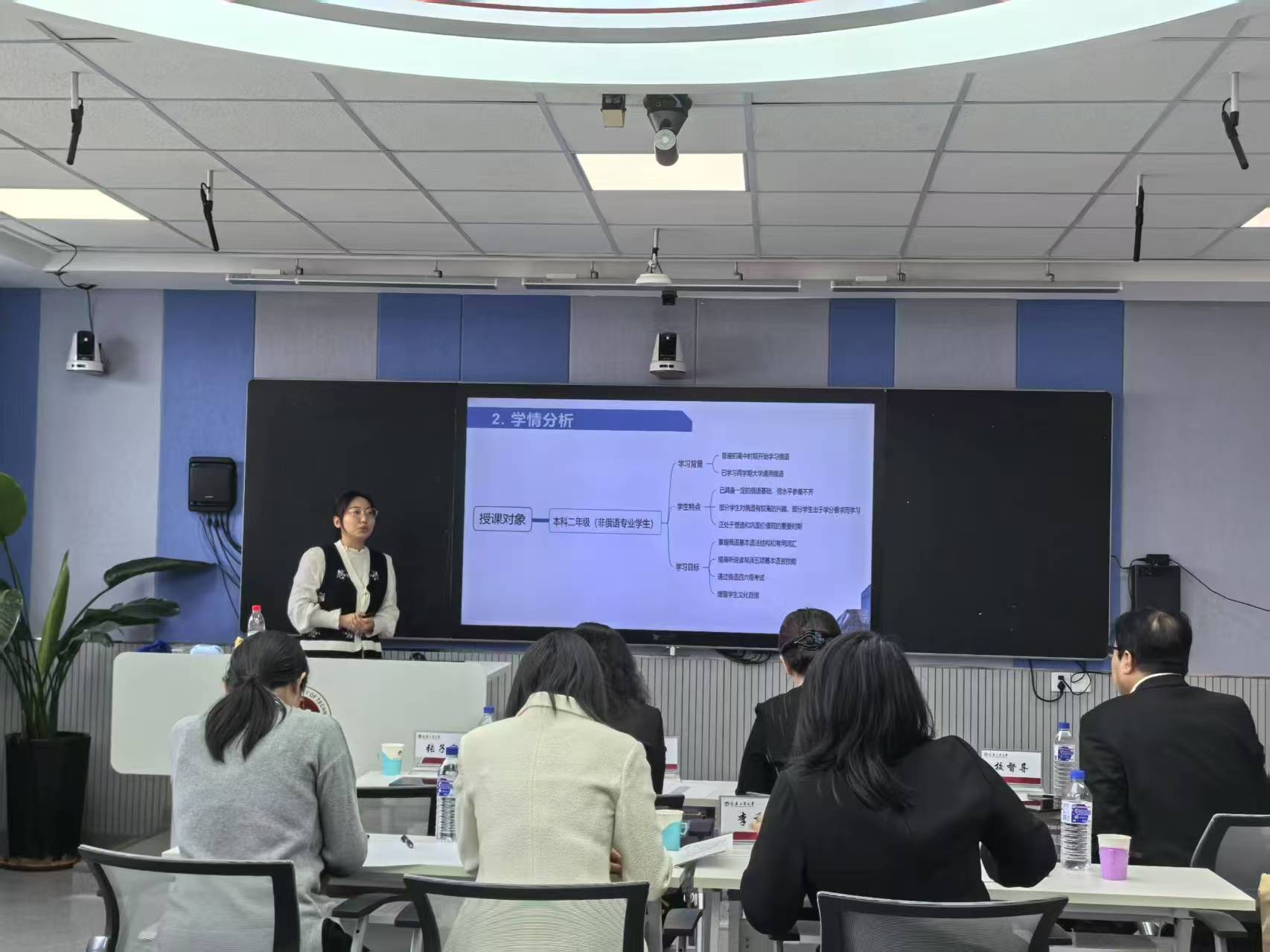 本次考核分为试讲和点评两个环节,共计35分钟,全面检验参训教师对现代教育技术应用、课程思政融入及课堂互动策略等核心能力的掌握情况。考核现场,参训教师首先对所授课程进行了说课,然后模拟授课。