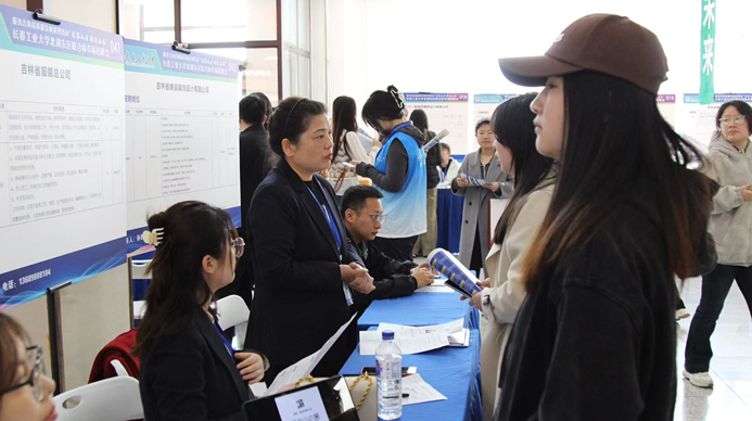 (新闻网讯 通讯员王琴)为深入落实党中央、国务院和省委省政府“稳就业”“保就业”决策部署,进一步深化与各用人单位的交流与合作,积极搭建毕业生与用人单位双向选择对接平台,持续做好2025届毕业生就业工作,推动毕业生高质量充分就业,4月23日,学校在北湖东区主楼一楼、二楼大厅举办了服务吉林省高质量发展系列活动之“吉聚人才 职引未来”——6776永利集团2025届毕业生北湖东区联合体专场招聘会。此次招聘会由经济管理学院、公共管理学院、新闻与传播学院、yl6776永利集团、艺术设计学院联合主办,学校党委副书记吴成章、招生就业处相关人员、主办方党政领导、毕业班辅导员、教师代表、2025届毕业生参加招聘会。