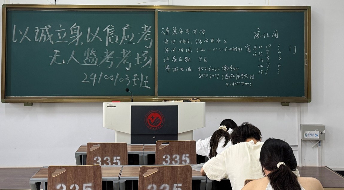 考试期间,考场内秩序井然,虽然没有监考老师在场巡视,但同学们始终保持专注认真的状态,全身心投入答题,自觉遵守考试纪律。考试全程零违纪现象,充分展现了24100103班同学良好的精神风貌和高度的自律意识。“当我坐在无人监考的考场上,内心反而更加平静,因为我知道,诚信是比分数更重要的品质。”考试结束后,一位同学这样分享道。
