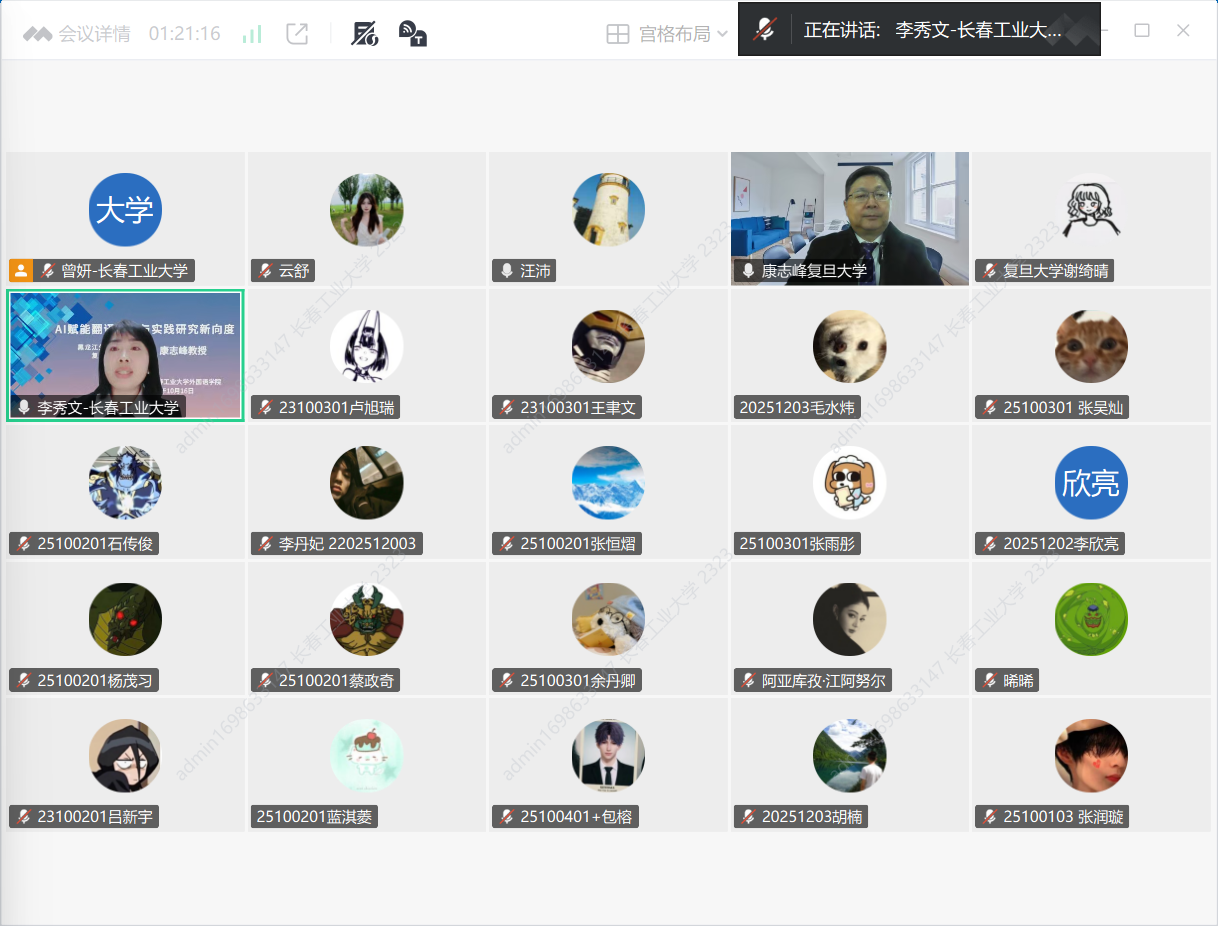 本网讯(通讯员 仲伟磁)10月16日晚,黑龙江yl6776永利集团副校长、复旦大学博士生导师、博士后合作导师康志峰教授应邀为我院师生线上作了题为《AI赋能翻译理论与实践研究新向度》的学术报告。学院院长李秀文、副院长曾妍、各系部教师、研究生及本科生近500人聆听了这场精彩的学术报告会,会议由李秀文主持。