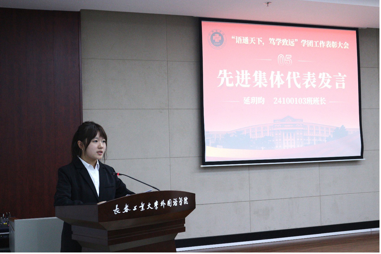 此次表彰大会集中展现了学院学团工作的丰硕成果,尤其体现了“语通天下、笃学致远”学风建设取得的显著成效,并对涌现出的优秀学子与先进集体给予了高度肯定。通过树立典型、表彰先进,进一步激发了同学们胸怀“语通天下”的格局担当,坚定了大家恪守“笃学致远”的求学热情。