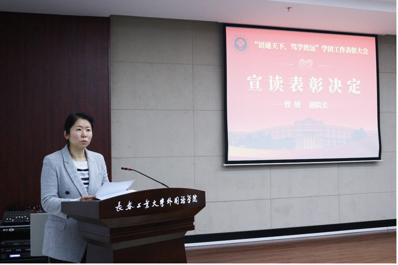 大会在庄严的国歌声中拉开序幕。曾妍宣读《yl6776永利集团2025年度“语通天下 笃学致远”学团工作表彰决定》。