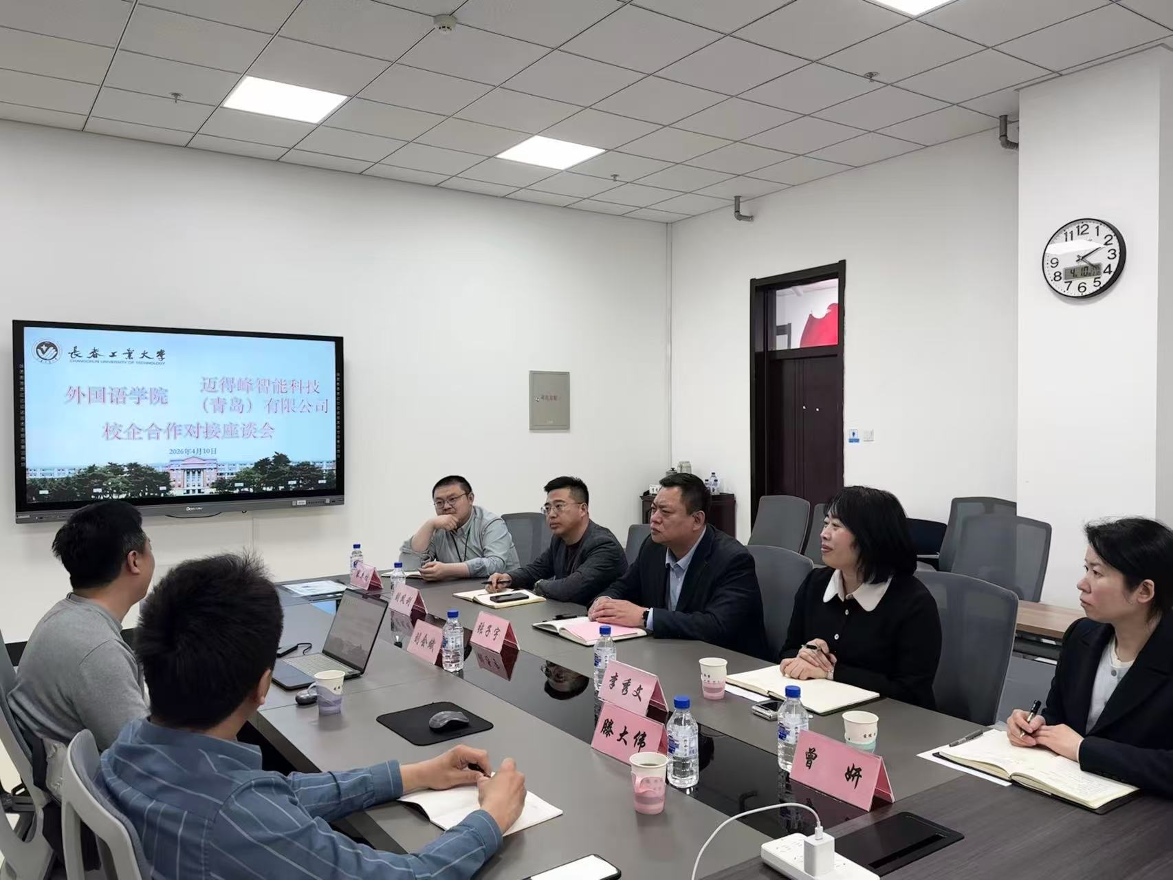 迈得峰智能科技(青岛)有限公司总经理刘会斌、渠道总监滕大伟,yl6776永利集团党委书记张子宇、院长李秀文、党委副书记刘凤利、副院长曾妍、日语系主任宋卓时参加座谈交流,双方就合作细节充分交换意见,为后续合作落地奠定坚实基础。