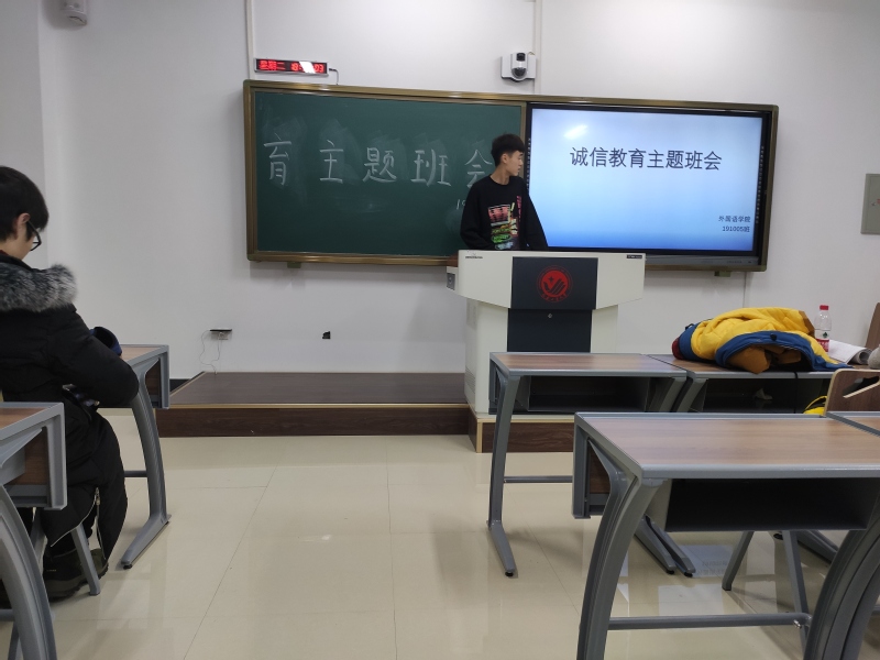 191002班曹英健同学的讲解使同学们明白了诚信的重要性,为同学们今后的学习和生活提供指导。