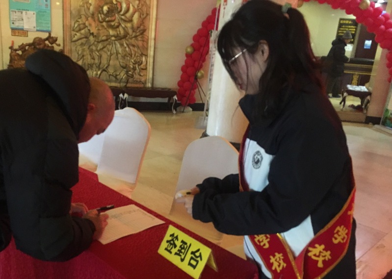 志愿者的第一个任务是接待引导联欢会的来宾和家长朋友。志愿者们分布在不同位置,迎接各位家长和孩子们的到来。