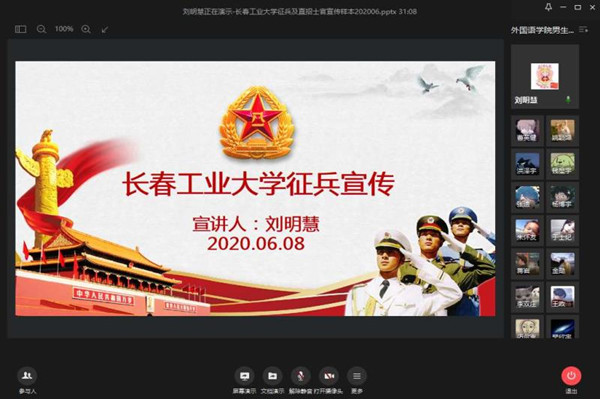6月8日晚,学院党委副书记王颖群老师、学生工作办主任赵海涛老师、学生党支部书记刘明慧老师召开了征兵宣讲会,对全院学生,分层、分级、分段进行了征兵布置。学生党支部书记刘明慧老师,讲解了《国防法》《国防动员法》《兵役法》《征兵工作条例》《大学生应征入伍优待和安置政策》等政策法规。让我院学生对应征入伍是光荣且为国家履行兵役义务有更好的认识,并清楚地了解国家针对征兵入伍制定的相关优抚优待政策。