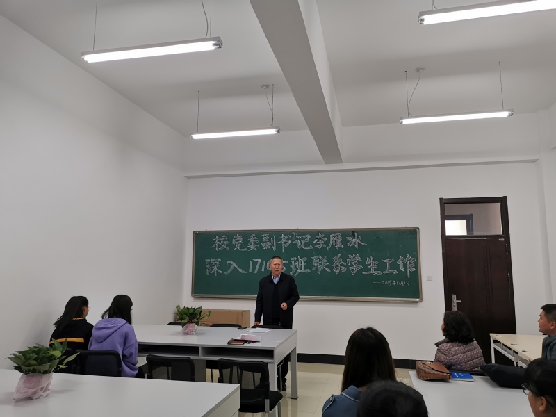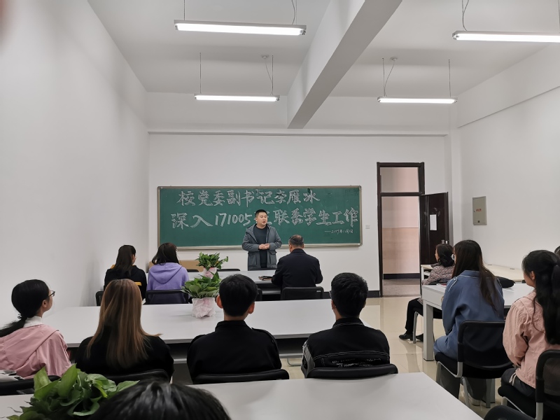(通讯员:李雨晴)11月1日,为积极响应《6776永利集团领导干部深入基层联系学生工作实施方案》要求,深入基层学院,进入学生班级,与学生“面对面”,把思想政治工作真正做到学生心坎上,校党委副书记李雁冰再次来到对接班级171005班,了解学生情况,解决学生困难。本次联系工作气氛热烈,效果显著,师生共同期待下次见面。