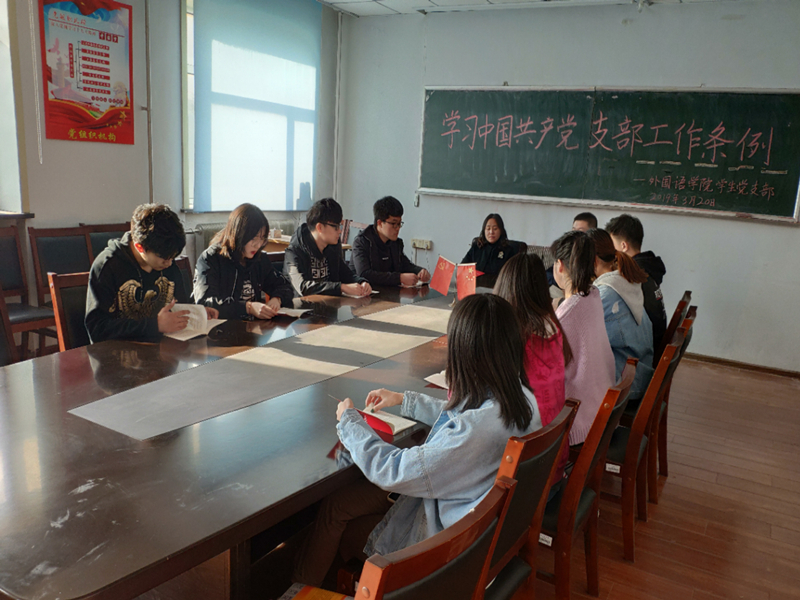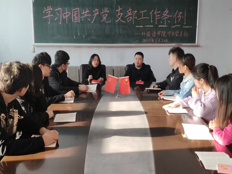 (通讯员:鲍越崎)3月20日下午3点40,yl6776永利集团党委副书记王颖群、学生党支部书记赵海涛领导学生党支部成员在外语楼会议室召开了支部党员大会,组织学习《中国共产党支部工作条例》。