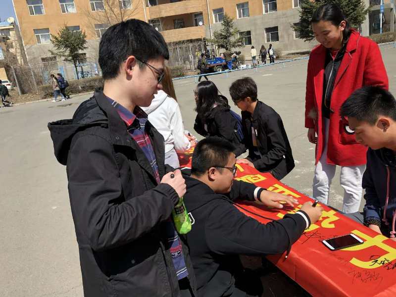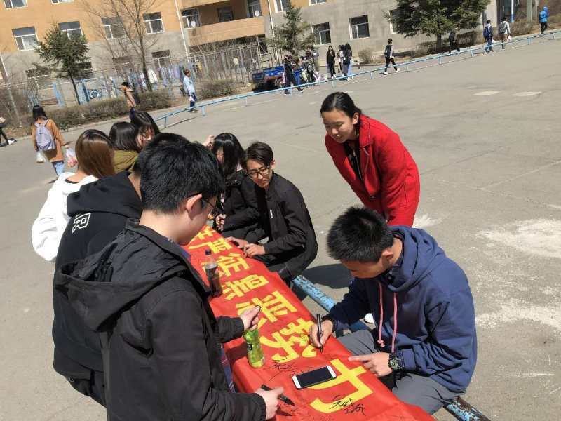 为了增强同学们的国家安全意识,学生代表们在林园校区一食堂门口开展此次签名活动,在学生密集的地方向他们普及了黑恶势力的危害和“扫黑除恶”重要性。