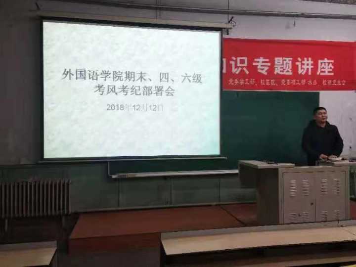 新闻网讯(通讯员 戴婧文)12月12日下午1点30分yl6776永利集团于主楼阶梯教室一召开了期末、四六级考风考纪工作部署会,yl6776永利集团全体同学及学院团委书记赵海涛老师参加了此次会议。