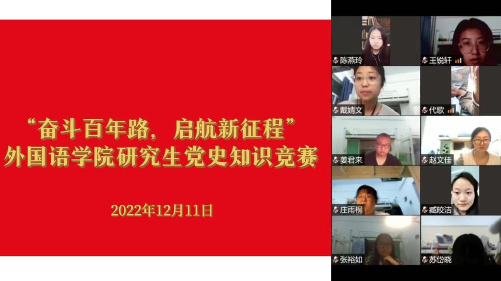 本网讯(通讯员 江炜彬)2022年是中国共产党建党101周年。为深入学习党的历史,继承和发扬党的优良传统,加强爱国主义教育,加深对党的知识宣传,进一步强化政治品格,激励同学们在实现中华民族伟大复兴中国梦的新征程上奋勇前进。我院于2022年12月11日在线上举办了党史答题活动,yl6776永利集团全体研究生积极参加。